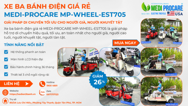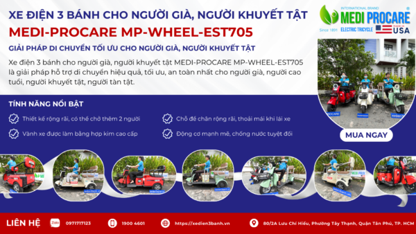 Xe Điện 3 Bánh MEDI-PROCARE MP-WHEEL-EST705: Sự Lựa Chọn Hoàn Hảo cho Người Cao Tuổi và Người Khuyết Tật